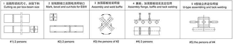 A coluna da caixa (coluna) é composta por uma viga em forma de "U" e uma placa de cobertura que foi soldada e formada. Durante a montagem, a peça de trabalho está estacionária, a máquina principal se move nas seções e o modo de montagem de fixação é posicionado conforme necessário.