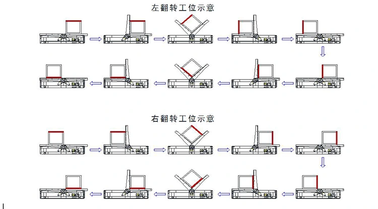 Duas peças de ladrinha móvel de 180 ° de feixe hidráulica são usadas para reviravolta de peças de trabalho soldadas de um lado. When working, lift the work piece away from the roller table or work-piece rack, and the reducer drives the two beam flippers to move synchronously to move the work piece to the side of the roller table or work-piece rack, and then two hydraulic cylinders drive the two arms to rotate synchronously, move the work piece to the middle of the roller table or work-piece rack after overturning, and then transport the work piece to the next process or soldagem.